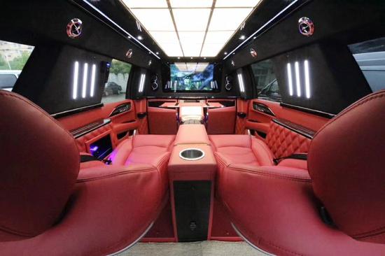 后舱6向高级真皮航空座椅带加热,通风及气动按摩,舒适腿托,4区域高级气氛灯,可独立控制,迈巴赫顶灯,,梦幻蓝夜间气氛灯,智能中央控制触摸屏,控制后舱所有电子及电动设备,咖啡机,电视隔屏,阿尔派发烧级音响,空气净化器,前后对讲电话
