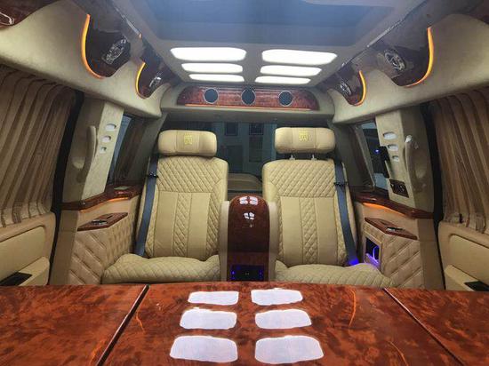 18款林肯领袖一号内饰配置:升降32寸液晶电视,它的作用主要是能与驾驶室隔断开来,让后乘客舱私蜜性更好,林肯领袖一号还配置有DVD,BOSE音响,对讲机和独立空调开关,坐在后排的你,就像住在五星级酒店一样,有电视看,有网络办公,有咖啡机烧水饮用,我们的林肯领袖一号采用进口缅甸柚木作地板,它和游艇上用的是一样,可以用水直接冲洗。