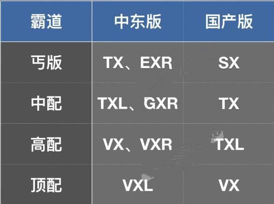 第三个差别,是车内配置。国产版虽然机械上落后于中东版,但车内配置一向都是比中东版要高的。以TXL为例,国产版标配中控大屏、彩色行车电脑、座椅加热通风等,这些配置,中东版通常要买顶配的VX才会有。