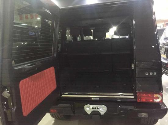 奔驰G63的内部驾乘空间表现一般,前排人员尚可获得较为充足的使用空间,不过第二排乘客的腿部空间却基本没有发挥的余地,本身后排座椅的坐姿就比较高,使得乘坐者在后排一直处于很高的静置状态,没有足够腿部空间的协调,乘坐起来并不舒服。行李箱内两侧设计的隐性座椅,我想更适合用于武装势力,一般日常使用用途不大。