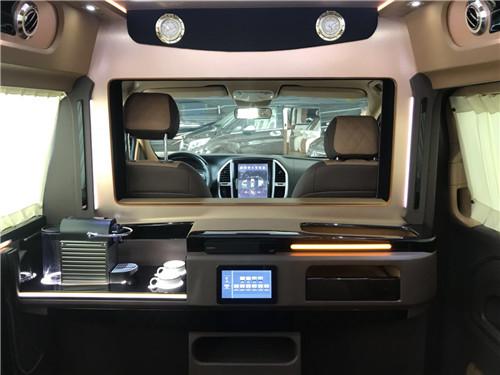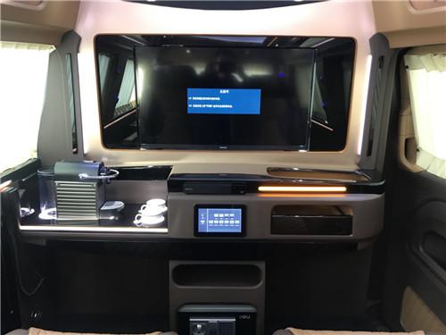 内置奢华配件,空间宽阔。木质地板,独特吧台,下置冰箱,电器灯光触摸屏控制。可升级调节液晶电视,两侧各有航海钟,内含温度计、湿度计。两侧也各置储物柜,形成中国古典的左右对称设计理念。壁灯、氛围灯、吧台灯,照亮整个车箱,即使在漆黑的夜晚,也同样“熠熠生辉”。