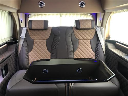 德国知名的按摩座椅生产厂家专业定制,附加座椅通风、加热及记忆模式,带旋转功能,很好的营造了一个商务洽谈空间。后座连排三人沙发座椅可躺平变床,中设中央扶手,带独立的座椅调节触摸屏。