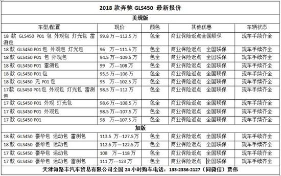 2018款奔驰GLS450最新价格行情,(供参考,具体优惠行情请致电新闻末端联系方式。)