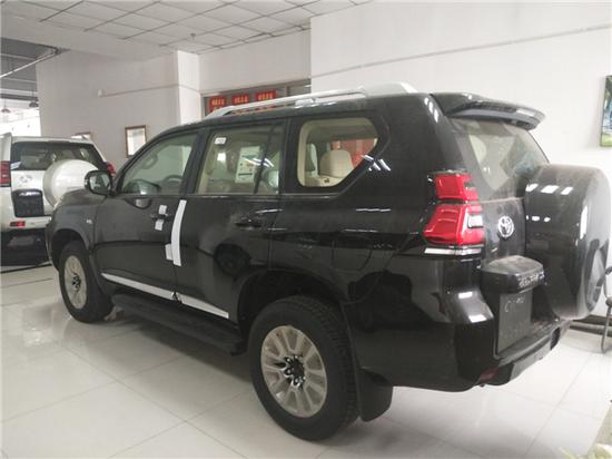 | 丰田霸道4000TXL天窗摇启版配置:18铝轮,雾灯,前小杠,卤素大灯,天窗,黑色踏板,遥控启动,银色行李架,电眼,脱钩,高位刹车灯,电动折叠后视镜,多功能方向盘,巡航定速,自动恒温空调,智能卡,一键式启动,下坡辅助,差速锁,冰箱,大屏。 | 电议 | 电议 | 优惠电议 | 现车 |
