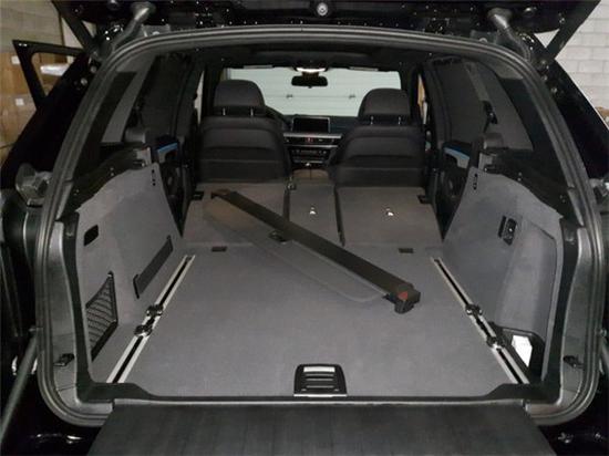 全新进口宝马X5内饰 一如既往地动人,高品质的材料、坚固的装配和出色的做工构成了你我熟悉的宝马式的高档感。内饰依旧保持了宝马车型的一贯风格,掀开行李厢的地板,可以看见新X5配备了非全尺寸配备,以防不时之需。另外,这里还有一个可以存放维修工具的储物格。此外,运动款的方向盘也标有与普通版不同的M标志。