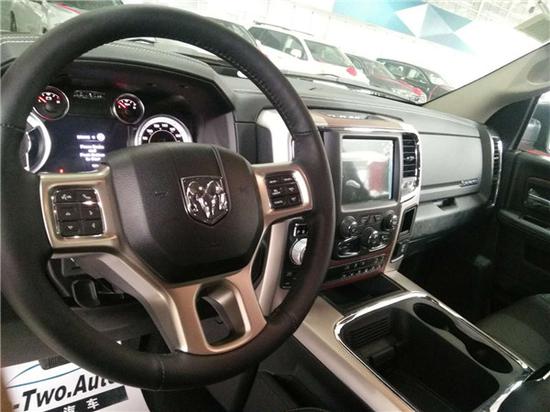 17款道奇公羊在内部设计上还是延续了美式那种比较粗犷的风格,规整的中控台设计看上去比较死板,但丰富的配置会让你不由得为其称赞。中控台的设计简洁硬派,符合公羊的气质。仪表盘底边有花纹,则更加凸显了这款车的文雅性。软性材质的仪表台设计,摸上去手感非常舒服,并无些许生硬之处。