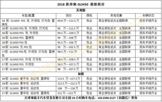 2018款奔驰GLS450本周最新市场行情。(仅供参考,近期价格浮动,具体价格请致电文章末端联系方式。)