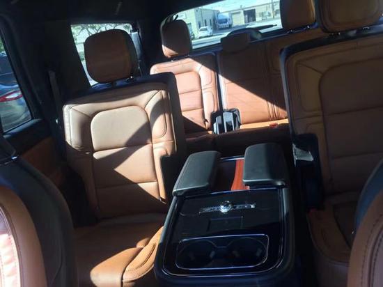 内饰方面:18款林肯领航员加长中控台的造型与宽大的黑色车身相呼应。内部设计精致而细腻,与外表风格正好相反,突显其舒适、实用和高效的性能。皇家座椅按摩、加热、推托及电动调节,可升降分隔屏,前后对讲电话等等,后排的空间和配置让人震撼。