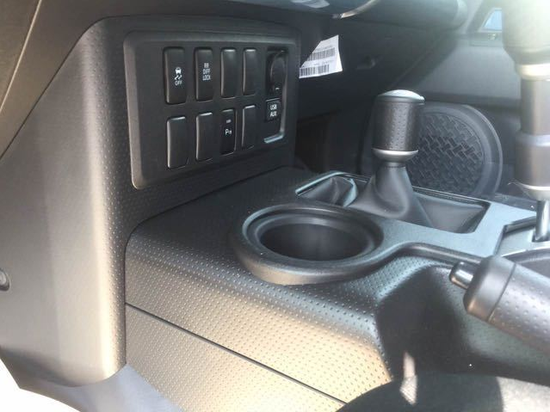 中控台上的按钮比较少,设计划分为3个区域,音响区、空调区和行车电子系统按钮区。作为一辆标榜具有越野能力的越野车来说这些已经足够了。2013款FJ加入了陡坡缓降功能,此外与2010款没有区别,依旧配备了VSC车身稳定控制系统的开关,手动关闭以体验更纯粹的越野和驾驶乐趣。