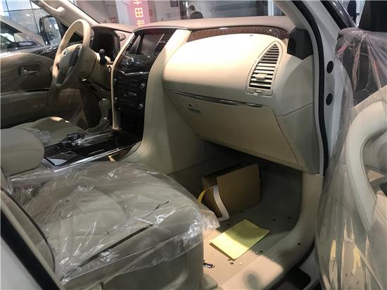 #内饰方面,18款日产尼桑途乐Y62硬派越野车尼桑途乐4.0中东版顶级车型,真皮与大面积软材料搭配深色实木,可以说途乐的内饰用料极其奢华。多功能真皮方向盘的手感不错,但如果能够再粗壮一些会更好。多媒体系统操作简单,支持触摸式操作。前排座椅配有座椅通风与加热功能,同时还配备了方向盘加热。而后排还配备了独立空调与外接设备的接口,同时还有独立的影音设备,能够播放车载DVD与外接影音文件。