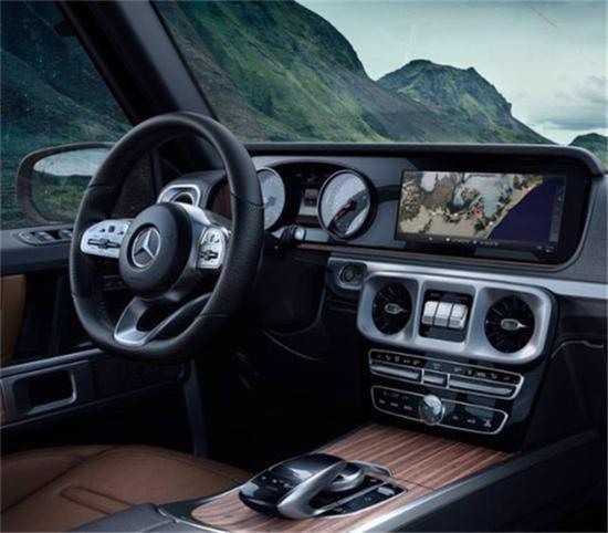 2019款奔驰G级 (配置|询价)采用了最新的奔驰家族化的内饰设计,觉得终于对得起它的身价了,双12.3英寸的仪表盘,家族化的方向盘,依旧保留了副驾驶前方的扶手,让精致豪华多了一丝的野性。