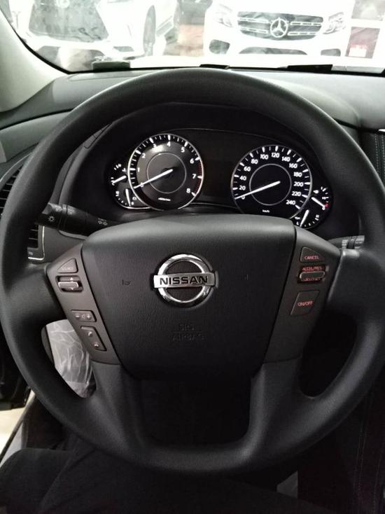 2018款中东版尼桑途乐Y62 4.0L配置:四轮驱动,18轮,7座,7速变速箱,自动挡,两气囊,智能卡,一键启动,镀铬内门把手,脚踏板,电动折叠后视镜,卤素大灯,LED尾灯,后雾灯,感应雨刷,尾翼,多功能方向盘,真皮档杆,电动车窗,定速巡航,冰箱,自动空调,4扬声器,上下坡辅助,中差速锁,胎压监测,镀铬包,140L油箱,备胎。报价:49万。