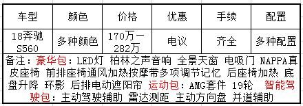 据了解该公司是一家专业从事平行进口汽车批发零售及装饰的车辆销售公司。他是作为武汉名车汇集团在天津的分支机构,注册资金2000万元整,展厅面积1500余平方米。目前公司主营车型为丰田。路虎。宝马。奔驰。奥迪。宾利等多种车型。公司的业务涵盖海外车辆订购,个性话改装,售后服务。公司的宗旨是始终坚持“创造经典 止于至善“的经营服务理念,着力打造极具人性化的专业服务项目,为广大用户提供销售。装饰等全方位的服务。下面我们进一步全方位的了解一下这款2018款奔驰S560。具体优惠价格请咨询新闻底部商家电话及微信。