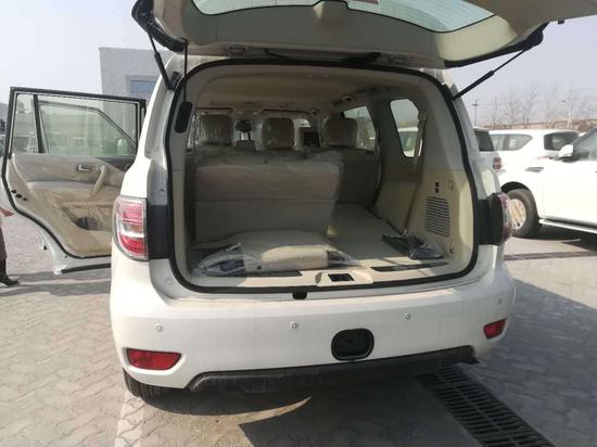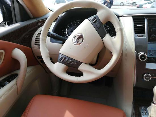 原车改装鹿皮顶,真皮座椅日产尼桑途乐内饰兼具了舒适性和功能性。仍然为三排座车型,内饰材质也更加的考究, 使用了皮革,铝以及木纹样条作为点缀,以浅色调为主,营造出了轻松惬意的驾驶环境。全部完全遵 循了游艇的设计风格,宽敞、舒适、豪华。中控部分的设计比较具有豪华感,标准日系豪华车的风格 ,