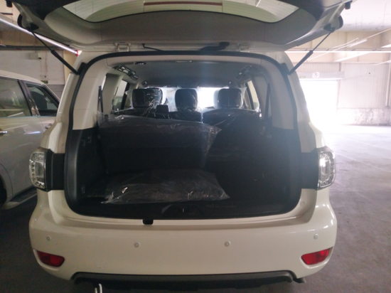 2018款日产途乐XE(后视镜与车身同色)配置: 7速自动,全时四驱,18寸铝合金轮毂,多路况越野模式,侧踏板,后视镜电动可调,电动折叠,前大灯卤素,间歇性雨刷,后尾翼,多功能方向盘,方向盘调节手动高低、伸缩调节,一键启动,中控锁,无钥匙进入,带自动变速控制的定速巡航,织物座椅,冰箱,双区自动空调,后区制冷,2气囊,儿童座椅装置,坡道起步,电子坡速控制,限滑差速器,后差速锁。