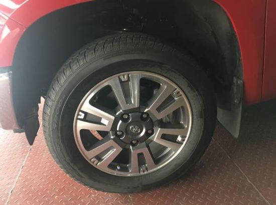 18寸轮毂,轮胎与车身中间的距离之大,如同有底盘升降的越野车型,很适合越野。丰田坦途这款车是一款男人味十足的车。试想一下,你如果站在这款车身旁,映衬着后面高大的车身,大气粗犷的线条,将会是怎样一种景象