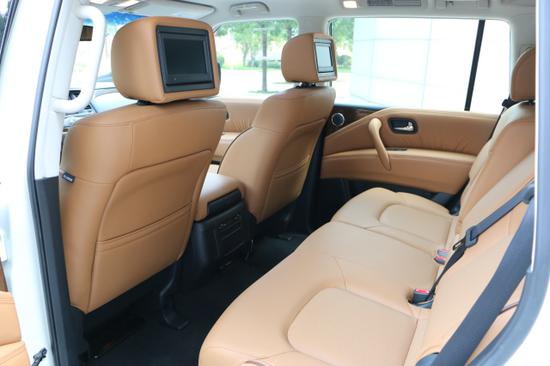 英菲尼迪QX80前两排座椅为乘客提供了顶级的舒适性,抛开轴距长度来说,它的第二排乘客腿部空间是同级别中最为优秀的。与第二排相比,第三排的座椅空间并没有那么出色,但是相比其他SUV车型要更为宽敞,乘坐舒适性也要更胜一筹,行李舱空间为470升。