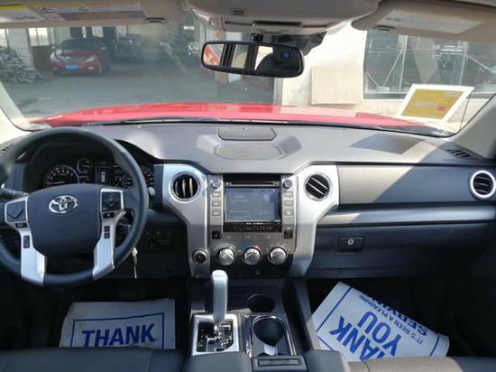 18款丰田坦途皮卡车厢里颜色协调搭配,做工考究的工艺,都让人眼前一亮。中控区被银灰色的面板划分为驾驶区与乘坐区,感觉更好!17款坦途皮卡仪表盘采用最新款的设计,炮筒式造型颇有运动型轿车的设计风格。五个小仪表给出了司机应该注意的技术参数,转速表、时速表、油量表、水温表、电池/机油表依次排列,数据显示清晰明了。动力强劲、空间宽敞、配置舒适,开着它翻山越岭也会是件惬意的事。高大的车身也能完全能让那些路上平时很嚣张的高档SUV产生一股莫名的紧张感。