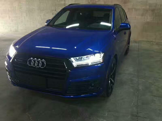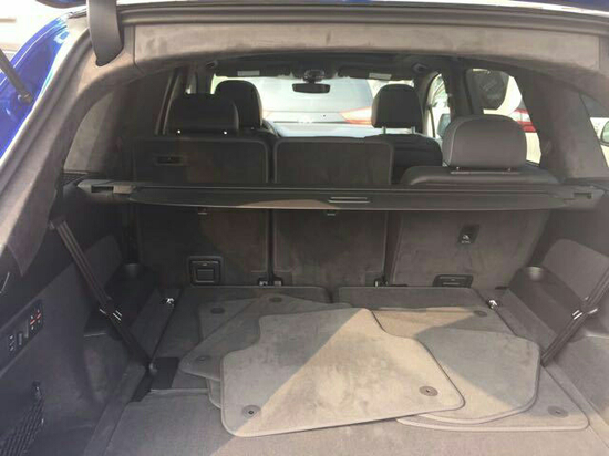 2017款奥迪Q7 (配置|询价) 17款 3.0T 汽油 科技版 雪邦蓝/黑灰 1。动态驾驶包(自适应空气悬挂,底盘升降 4轮转向)2。驾驶员辅助加强包(雷测 抬显 交通信号识别)3。豪华座椅高级包(按摩通风座椅,电吸门,翻毛皮门板)4.S line运动包(21寸刀锋车轮,S line车顶扰流器,黑色车顶棚,285/45全季运动轮胎,S line迎宾踏条,Sline挡泥板徽章,Sline前后保险杠和前翼子板标志)5。奥迪限量包(反毛皮顶 21寸刀锋轮 RS运动面板)标配:四区空调,三排座椅(7座),三幅方向盘加热,全景天窗,前后停车传感器,氙气前照明灯,LED日行灯,LED前大灯,LED尾灯,无钥匙启动,后隐私玻璃,驾驶员乘客座椅4方位电动腰部调节,脚感电尾门,前后座椅加热,前座椅通风,防盗报警系统,电动加热折叠外后视镜带电动调光记忆功能,环影,室内照明包增强版,液晶仪表盘,自动调光室内镜,奥迪车道侧向保持系统,BOSE三维环绕音响,MMI手写系统,智能卡。金属漆,拖车钩,拉丝铝橡木灰内饰,后车门遮阳篷。