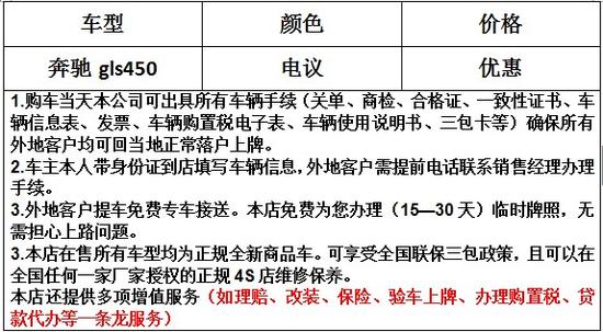 近日,在天津港保税区天津华夏安邦国际贸易有限公司了解到,2018款奔驰gls450展厅现车,现在购车享全国最低成交量。店内现车实力强劲动力十足,店内现车价格低手续齐全豪华惠享,现在进店购车可享更多商家优惠,机不可失欲购从速,想了解更多优惠资讯及车型车讯。