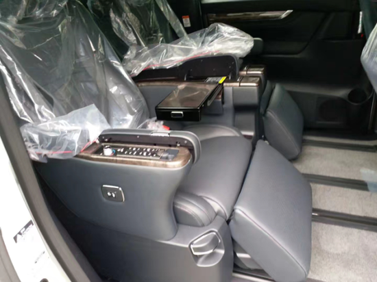 配置:7座,8前速变速箱,中文菜单,中文导航,倒车影像,行车记录仪,全景天窗,无钥匙进入(智能卡)一键启动,前后电眼,前后电动豪华航空座椅(按摩,通风加热,小桌板,推托),吸顶DVD,实木桃木内饰,桃木方向盘,JBL高级音响,电尾门,窗帘,19寸轮毂。