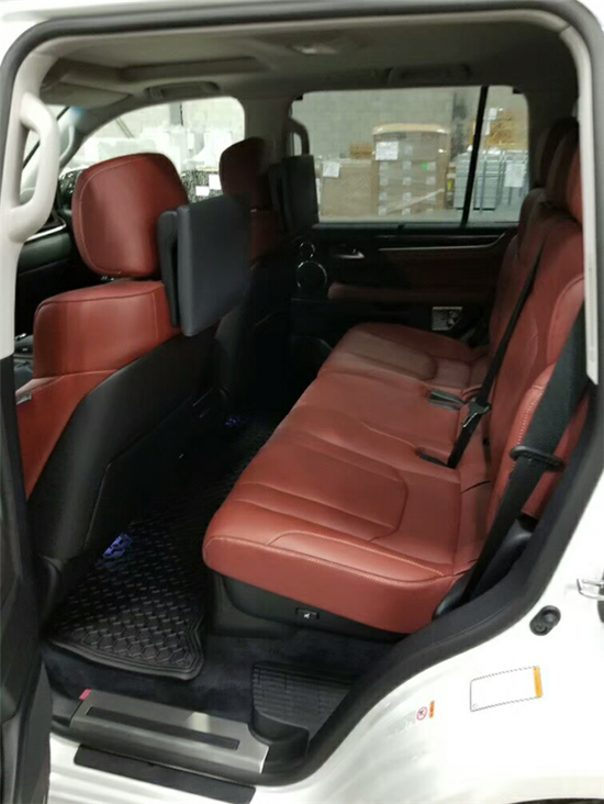 雷克萨斯LX (配置|询价)570采用“易进易出”模式,让驾驶者停车时可自动降低车辆高度,方便乘客进出车辆。在IG-OFF(停车熄火后)功能下车身可以自动降低(前轮降低60毫米,后轮降低40毫米),在起动加速后车身高度则恢复到正常状态。半苯胺高级真皮座椅辅以精致考究的非洲Buginga实木内饰,令每一次驾乘都尽享显赫尊崇。四区域独立温控系统、7.1声道MarkLevinson®高级音响系统及19个扬声器和后排9英寸VGA液晶屏组成的娱乐系统,为您呈现殿堂般感官感受。其它豪华配置还包括:智能钥匙启动系统及智能卡片式钥匙、以及按40/20/40比例分隔的第二排电动滑动座椅。LX570还配置了前排加热通风座椅、第二排加热座椅,以及前排中央扶手箱中的车载冰箱。18款雷克萨斯LX570大尺寸让车头细节部分很好的铺展开来,毫无拖泥带水之感,在享受奢华与舒适的同时,你可以开着它在非铺装的环境里走得更远,闯得更深。依旧是四幅多功能方向盘,样式显得很稳重。雷克萨斯LX570顶配凌志SUV一大亮点即增加了越野转向辅助功能,配合自动爬坡控制系统,能够减小转弯半径,提高转向性能,提升越野表现。搭载了一台5.7升V8发动机,最大功率达到381马力,而在电子系统的辅助下,LX570的拖曳能力达到了3800公斤以上。
