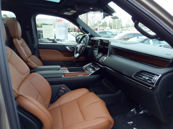 林肯领航员加长版新车及其奢华,多功能方向盘,全部真皮包裹座椅,内饰采用桃木搭配设计,高贵典雅,加长车身除了增加内部空间外,还给人营造一种尊贵典雅的感官。在中排座椅中间的储物箱,大得可以放十几瓶矿泉水,而中排座椅也因此变成了独立式,感觉上跟同家里的客厅一般;而第三排的宽敞出人意料,即便是成年人坐进去也不会觉得局促。