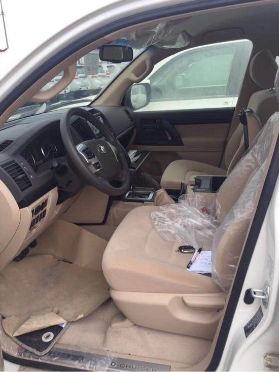 15款酷路泽4500 柴油 双涡轮增压 6速自动档 白米 双备胎、小屏、丝绒座椅、手动座椅、2气囊、17铝轮、氙灯、LED、一键启动、大灯清洗、冰箱、雾灯、8座(7座手续)、拖钩、大灯高低调节、多功能方向盘、中差、电动折叠后视镜 国五带环保清单