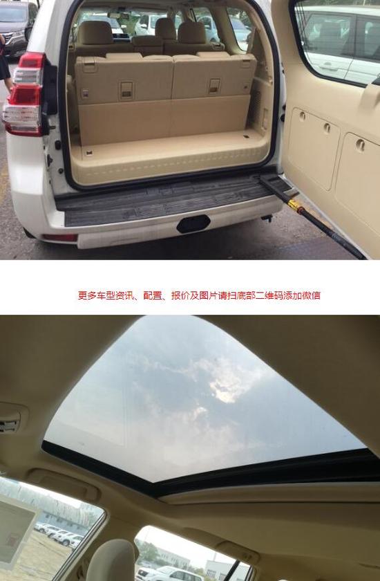 天津丰城远大国际贸易有限公司四月促销暖心回馈全面开启,目前进口2017/2018款丰田霸道(普拉多 (配置|询价))2700TX.L/2.7 VX.L中东版现车在售,底挂备胎,外挂备胎现车颜色齐全,配置丰富,最低报价,诚信经营!进口丰田霸道2700中东版尺寸较大且饱满的四幅方向盘手感不错,男同志使用起来绝对舒适,左右两侧银色装饰部分集成了音响系统和车载电话控制。双环式仪表精致、简洁,多功能液晶屏都是最常用的数据。中控台采用直立式设计风格,立体感十足,各个按钮触手可及,非常符合人体工程学。内饰整体布局很规整,深色中控台搭配银色面板让这款车看起来很简洁。现最全底价让利全国,对这款车感兴趣的朋友们不妨进一步关注一下。具体价格请详见下表: 文章图片均为店内实拍,更多行情购车咨询热线在文章的结尾处↓↓