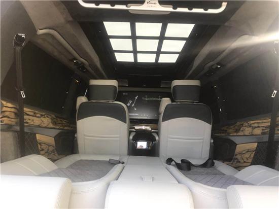 全新规划的三幅式方向盘更是选用了内嵌真皮外镶桃木的精美技术,炮筒式仪表盘,造型时尚,中央是一块高分辨率驾驶显示屏,科技配置还有超薄液晶电视、14寸独立屏、蓝光播放器以及DVB-T信号接收系统等。中央扶手箱,被设计成了一个拥有最冷可达零下18度的车载冰箱,夏日出行更为舒适