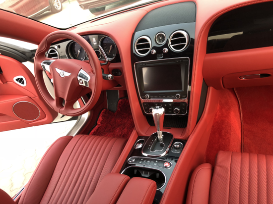 当全新进口宾利飞驰的中控台造型更偏复古,而用料则是这台车最大的亮点。中控台大面积的胡桃木饰板仿佛玉石一般润泽,让人非常舒心。三幅式方向盘由胡桃木与真皮组成,握感相当棒。仪表盘内使用了大量的镀铬边框,表盘设计较为复古。推拉式的空调出风口,开闭之间的阻尼适中,手感很棒,精致的镀铬工艺及造型更是让人欲罢不能。