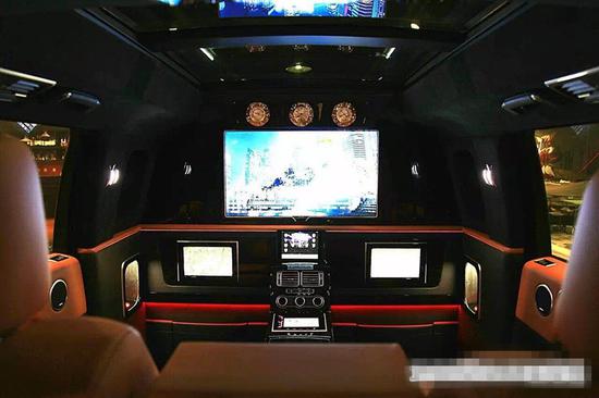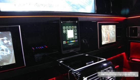 科技感十足,后舱控制器为一台平板电脑控制,以及各种功能按键及储物盒,配有几块led液晶娱乐屏幕,完全是土豪级的享受啊。