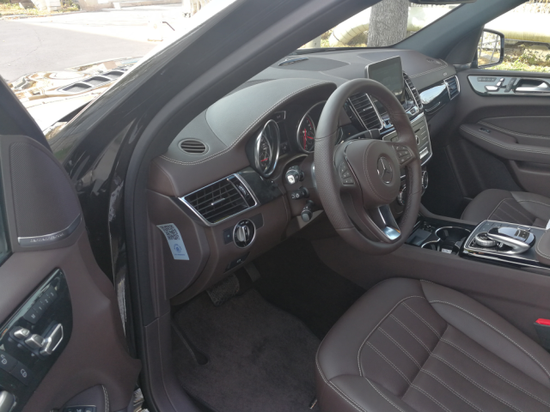 18款奔驰GLS450整个中控台上部都采用了真皮包裹,摸上去的手感细腻,是这个价位中应有的水平。新车内部融入了更多的木纹饰板以及皮质包裹,配置上新增了内饰氛围灯、人机交互系统、远程互联在线服务系统等。