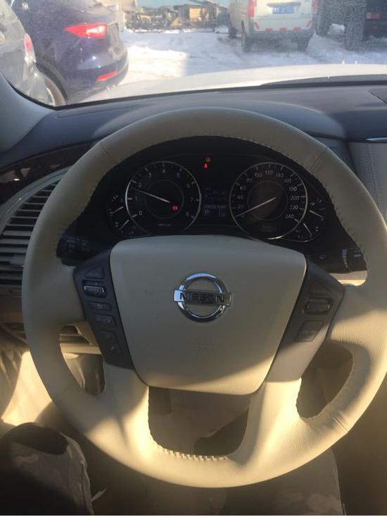 18款日产途乐Y62采用了豪华轿车惯用的四幅风向盘设计,粗细比较合手再加上真皮加实木的用料,手握感觉极佳。另外方向盘功能强大,集成了音响、空调控制及蓝牙车载免提系统,使驾驶者在行车中更为安全,做到手不离方向盘。同时方向盘加热功能,令驾驶者双手在寒冷的冬季也能得到最佳的呵护,日产途乐内饰兼具了舒适性和功能性