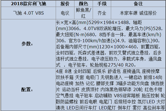 3。 宾利飞驰V8S纯正的英式血统,低调奢华,整车找不到任何花里胡哨的设计。拥有令人难以置信的速度,不论车内饰、外观还是性能都淋漓尽致地体现了宾利精湛卓越的工艺。