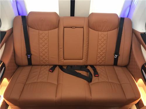 座椅呈2-2-3型排列,整洁美观,真皮制作,柔软舒适,驾驶舱与乘客舱全隔断分开,但雾化玻璃解决了互通的问题,乘客舱独立座椅具备电动加热、按摩、通风等功能,可多方位调节,后排沙发座椅可以平躺成床,中排与前排之间可以添加桌板,成为移动办公室。车舱顶部配置LED灯光七彩变化,遥控控制定格颜色,可以是功成后的祝贺模式或放松心情的治愈模式。