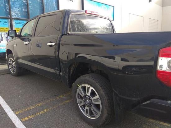 18寸轮毂,轮胎与车身中间的距离之大,如同有底盘升降的越野车型,很适合越野。18款丰田坦途这款车是一款男人味十足的车。试想一下,你如果站在这款车身旁,映衬着后面高大的车身,大气粗犷的线条,将会是怎样一种景象