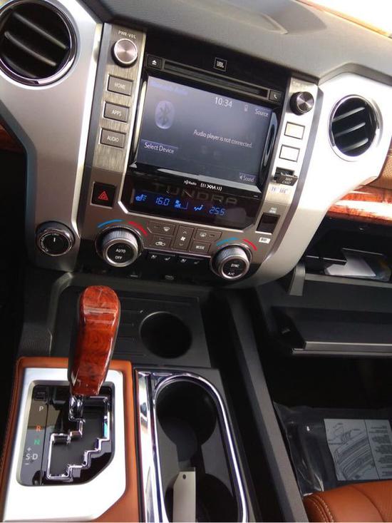 18款丰田坦途皮卡车厢里颜色协调搭配,做工考究的工艺,都让人眼前一亮。中控区被银灰色的面板划分为驾驶区与乘坐区,感觉更好!18款坦途皮卡仪表盘采用最新款的设计,炮筒式造型颇有运动型轿车的设计风格。五个小仪表给出了司机应该注意的技术参数,转速表、时速表、油量表、水温表、电池/机油表依次排列,数据显示清晰明了。动力强劲、空间宽敞、配置舒适,开着它翻山越岭也会是件惬意的事。高大的车身也能完全能让那些路上平时很嚣张的高档SUV产生一股莫名的紧张感。