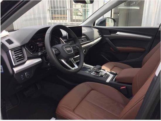18款奥迪Q5 2.0T Select精选 配置:2018款,全景天窗,MMI手写导航,液晶仪表,智能卡,氛围灯,折叠后视镜,18寸轮毂,3区自动空调,胎压,行李架,氙气大灯,LED日间行车灯,自动防炫目后视镜,多功能运动三幅带拨片方向盘,电动带4项腰部调节座椅,奥迪驾驶选择。