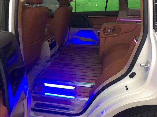 (7座关单7座一致性),白色金属漆外观,棕色内饰,蠕行系统12气囊,天窗,主副驾驶电动座椅,中央差速锁,环影,迎宾灯,底盘升降,弯道辅助,真皮座椅,座椅通风,桃木内饰,真皮多功能方向盘,冰箱,智能卡,一键式启动,遥控启动,后排头枕娱乐,耳机,座椅记忆,巡航,触摸大屏,大屏倒影,自动空调,蓝牙,电动折叠后视镜,坡道辅助,氙灯LED,285-20轮毂,脚踏,前二后四电眼,拖钩,行李架,雾灯,双油底挂,灰色亮条中网,尾翼,胎压监测,大包围,电动升降尾门