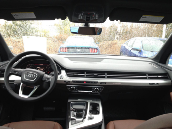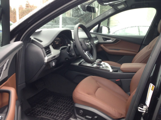 奥 迪Q7内饰也彻底贯彻了奥迪科技生活的理念,全数字化液晶仪表盘,多功能方向盘、全新电子挡把、带有大尺寸手写板的MMI系统一应俱全。仪表台做工十分精 细,各相关接缝均匀,与车门处的间隙合理。中控台的功能键排列有序,在排挡杆的周边,布置了MMI多媒体交互系统和一键式启动按钮,体现出奥迪崇尚科技的 一面。