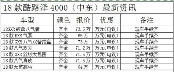 18款兰德酷路泽4000中东版实现了公路行驶和越野性能的最佳结合。不仅在越野路面上有着出色的车身刚性,其隔音性能与行驶表现也比普通SUV好不少。新车搭载了4.0L V6引擎,最大功率可达到275马力,分时四驱,在复杂的路况下也可以保证强大的抓地力和动力性能。丰田酷路泽4000比原有发动机提升了23kw,最大扭矩提升了9N.m,从容应对着170多个国家的地域环境。丰田酷路泽4000见证一个传奇的诞生。