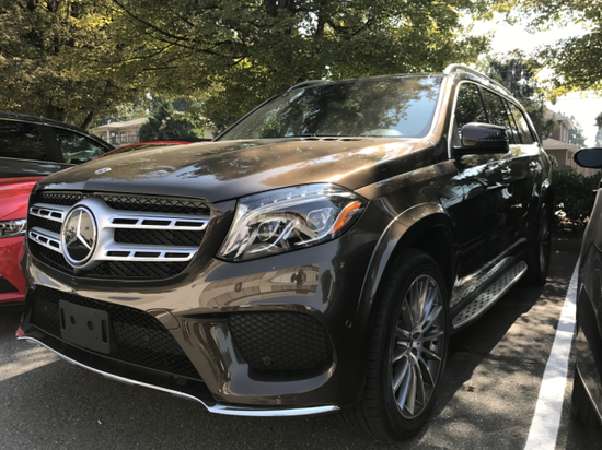 2018款奔驰GLS450配置:黑色杨木内饰,全景天窗,加热方向盘,拖钩,哈曼卡顿环绕声,第二排电动折叠座椅,后娱预留,发光星标,P01包(导航及地图,卫星收音机,无钥匙进入,一键启,苹果汽车播放器,盲点辅助,并道,多色氛围灯,前门照明,电动记忆和腰部支撑乘客座椅),灯光包(自动LED前大灯,远光灯辅助),外观包(20轮10辐,脚踏板),停车辅助包(泊车辅助,环影)