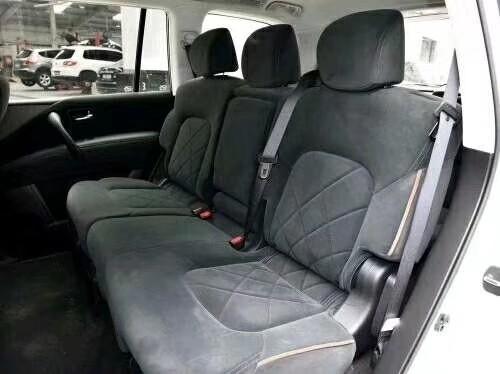 18款日产途乐y62中控部分的设计比较具有豪华感,标准日系豪华车的风格,bose音响是很多中高端车所选用的,音响效果不会让你失望。方向盘为电动调节,左侧有很多控制键,比如大灯清洗、反光镜调节等等。中控风格保持了日系车一贯的细腻,采用了深色调的颜色搭配,带来具有高贵感的内饰氛围。同时,该车中控台及方向盘运用了大量的皮质包裹,在质感的营造上也较为出色。此外,这款车在换挡杆周围等区域融入了木纹装饰,这也相应提升了其内饰整体的豪华感。