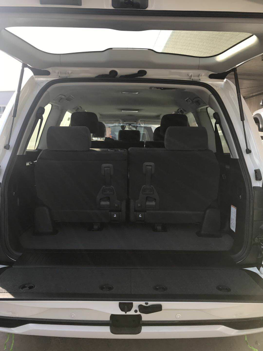 配置:氙气LED一体大灯,中网镀铬,大灯清洗,雾灯,前后大包围,车门防擦条,285/60R18寸轮毂,胎压监测,尾翼,高位刹车灯,航踏板,底挂备胎,智能卡,一键启动,多功能方向盘,巡航定速,天窗,冰箱,主驾驶电座,氙气大灯,LED,大灯清洗,迎宾灯,小屏,倒车影像,桃木方向盘,桃木内饰,7座丝绒座椅,2气囊,中央差速器,低速蠕行,车身稳定,银灰色原车行李架,彩条,前后雷达,电动折叠后视镜,后视镜带镀铬,脱钩。