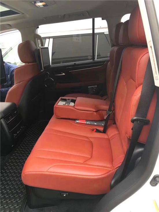 | 18款雷克萨斯LX570 | 金属漆 ,射灯 ,21轮 ,遥控启动 ,车身防擦条, 流水式转向灯,外置拖钩,带运动底盘,运动模式,换挡拨片、冰箱、天窗、智能卡、电眼、环影、后排娱乐、底盘升降、前座椅通风加热(真皮)、导航、桃木多功能方向盘、桃木内饰、铝制行李架、航空照明脚踏、LED 氙灯 大灯清洗、迎宾灯、四区空调、三排电动、电尾门、拖车钩、ACC自适应巡航、雷达测距、后座椅通风、车道保持、二排遮阳帘、抬显、马克莱文森音响 | 3至5万(以上) | 齐全 |