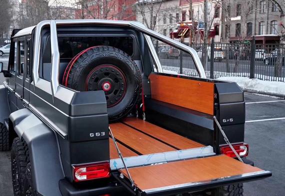 奔驰G63 AMG 6x6以现款G63 AMG为基础打造,新增一组后桥,车身加长并构造出一个开放式的行李空间,轮距也因此得到涨幅明显的扩展,以保证过弯时候的稳定性。