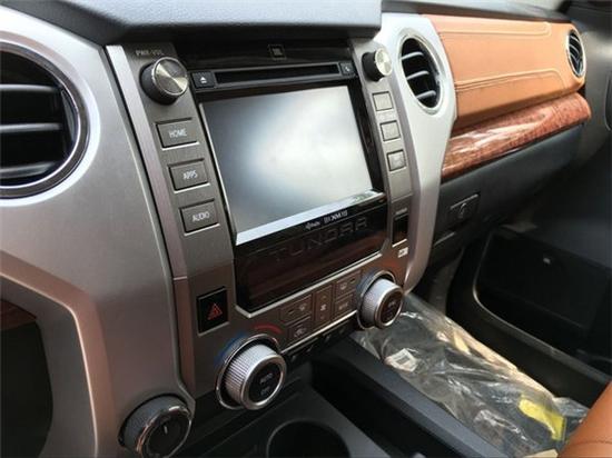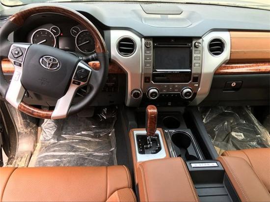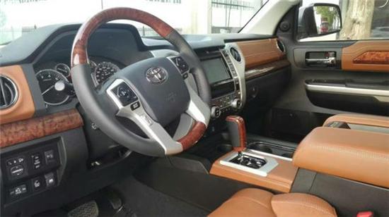 2017款丰田坦途1794版中控区被银灰色的面板分别为驾驶区与乘坐区,在广大的车身内排挡杆更加靠近驾驶员更便于操纵。在内部计划上,座椅全部接纳真皮建造,方向盘和档把为桃木制作。肌肉感的设计一样持续到内饰的计划中。