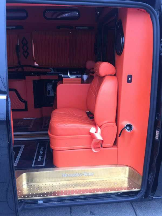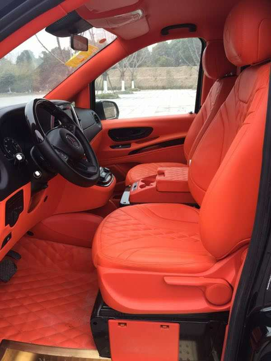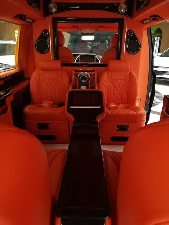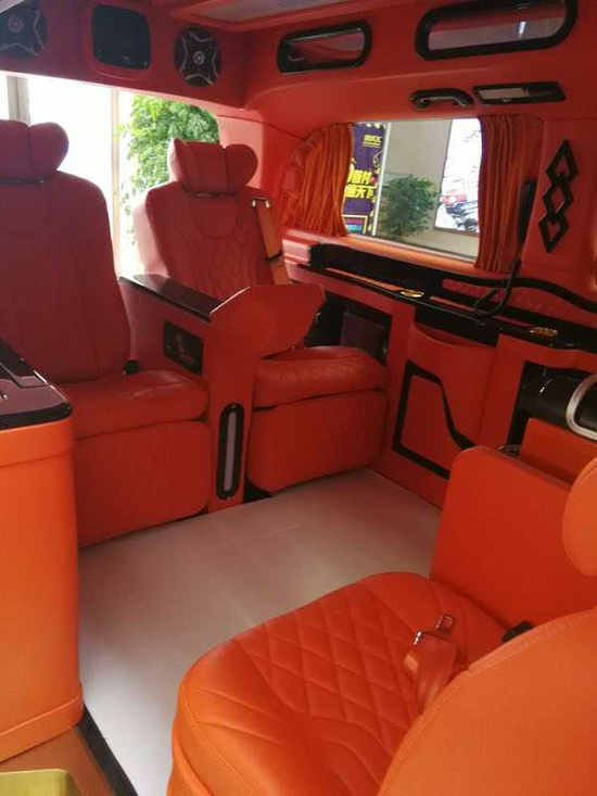 威霆内饰改装配置主要项目:全新配置航空座椅、首长办工作、固定秘书台、车载冰箱、冰箱外框装饰柜、不锈钢隐藏雨伞装 饰柜、全车加装加大加厚加宽座椅、全车真皮座椅、法国进口地毯、首长座椅、侧板桃木、侧板真皮、车载电视、高级音响系统、32 寸液晶电视可升降
