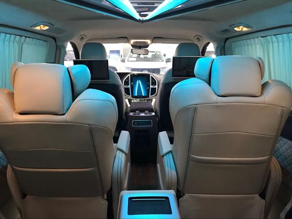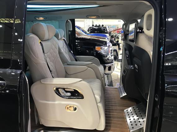 进行的改装升级成航空座椅的,并且加了加热、通风、腿托、按摩等功能,用的是整个进口真皮包覆,完美的展现了座椅的肌肉饱满十足,更加舒适;木板运用的是柚木地板,方便清洁打理,更加耐磨耐用;车内饰也采用了相同色调的搭配显得整车更加符合。